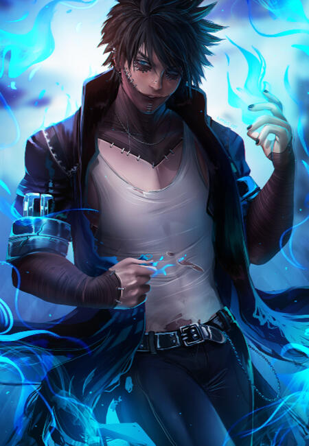To begin with, Erebus was born into a previous existing noble family known as the Yggdrasil. Despite rigorous training at a young age he was never proven to be among the most elite the family had to offer and was considered a disappointment. Erebus' life however changed forever one day after one of his younger siblings challenged him as the family elders looked on. Due to the fight, Erebus had suffered terrible injuries and physically had his chakra nature changed by an awakened logia user. This horrifically burnt him not only externally, but internally as well. Seeing the battle, the family elders subsequently replaced Erebus with his seemingly more gifted younger brother and focused their attention into grooming him to be the new family heir instead. Meanwhile, having suffered extreme bodily damage to the point where his chakra could no longer be held inside of his vesicle properly. Erebus had cracked under the surmounting pressure of not living up to the expectations set upon him and began to have a breakdown. This breakdown caused him to lose not only control of his emotions, but his newly acquired fire as well. This turned out to be catastrophic as he had no knowledge of how to turn his newly acquired fire off and that it was directly linked to his emotions. Not only that, but having not been born with fire release meant Erebus inflicted damage to his already heavily damaged body, leaving it horribly scarred and disfigured. After having burst into an uncontrollable blaze, it was assumed that Erebus had died, however this was not the case.
